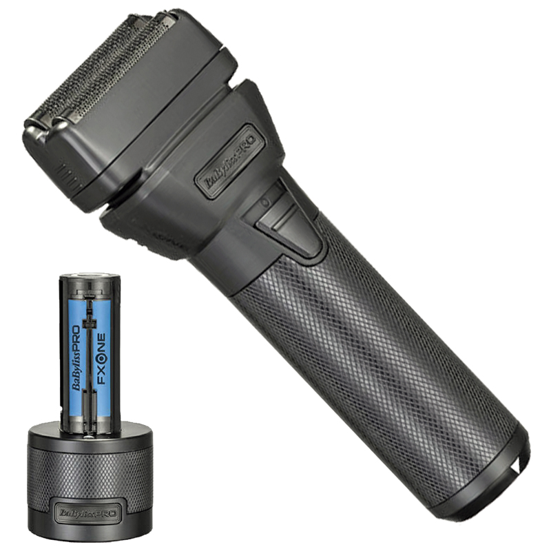 Máquina Finalizadora BaBylissPro Shaver FXONE Metal Black. Láminas de titanio dorado de alta precisión. Cuchillas de corte dual en direcciones opuestas. Nuevo motor digital de doble rodamiento de bolas para mayor eficiencia. 10,000 RPM. Batería Intercambiable de Iones de Litio. Hasta 4 horas de autonomía inalámbrica. Tiempo de carga de 2 horas. Botón para liberar y cambiar la batería. Indicador de nivel de carga con anillo LED de 4 niveles. Carcasa de metal mejorada de agarre ergonómico y gancho oculto para colgar. Batería FXONE con base de carga multivoltaje. Ajuste al cero. Cepillo de limpieza y aceite lubricante.